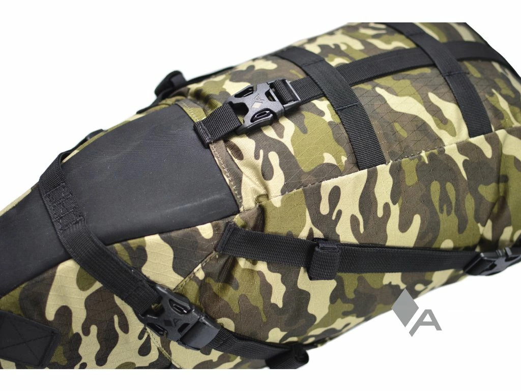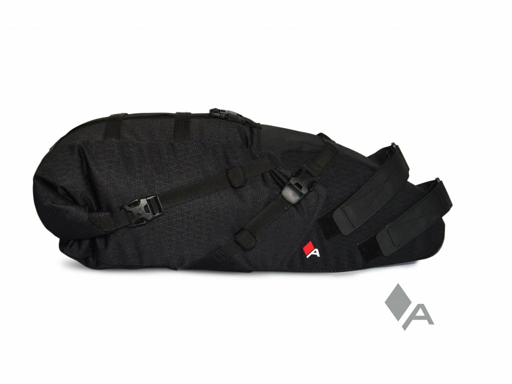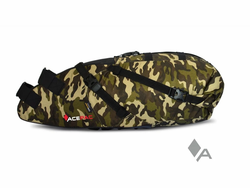 Riesige Satteltasche von Acepac mit integriertem und herausnehmbaren Drybag. Diese strapazierfähige und hochwertige Tasche ist wasserabweisend und spritzwasergeschützt, der innenliegende Drybag macht sie wasserdicht. Bikepacker, die eine mobile und schnittige Alternative zu Gepäckträgern suchen. Dank des ausgeklügelten Befestigungssystems sowie den Kompressionsriemen wird der Pendeleffekt reduziert und der Komfort spürbar erhöht. Leichte, hoch wasserabweisende und robuste Materialien schützen den Inhalt in Verbindung mit einem wasserdichten Innensack effektiv vor Wasser und Schmutz.