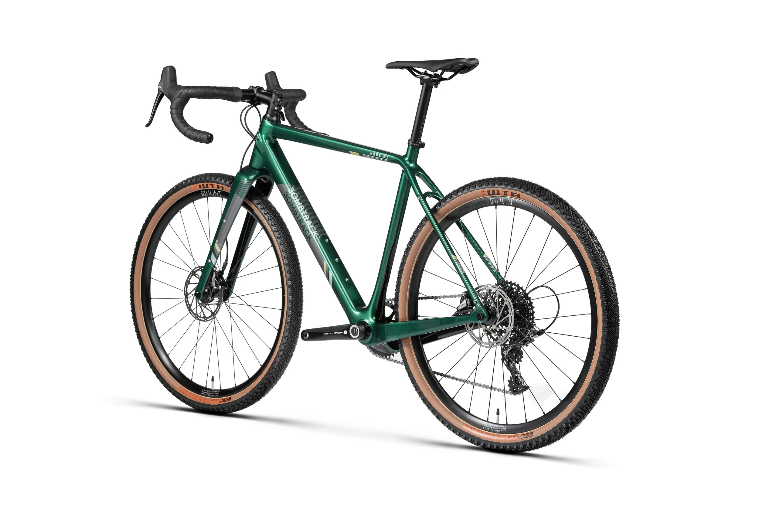 Gebaut aus hochwertigen, Toray T700/T800 Carbonfasern für perfektes Gleichgewicht zwischen Gewicht und Steifigkeit für ausgedehnte und schnelle Graveltouren. Die gerade und extra breite Carbongabel bietet einen Dreifach-Mount und eine 12mm Steckachse. Ausgestattet mit der neuen Bombtrack Lyer 30mm Aluminium Kurbel mit einem 40 Zähne Narrow-Wide (Direct Mount / SRAM Standard) Kettenblatt für perfekte Kettenführung und einer 10-42 Kassette ist jede Steigung möglich – auch mit Gepäck. Sowohl die Reifen, als auch die Felgen sind tubeless-fähig und kommen beide aus dem WTB Werk.